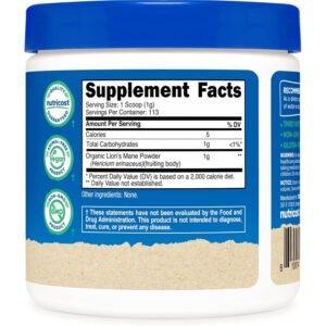 Melena de león en polvo para memoria, foco y bienestar cerebral, certificado orgánico USDA