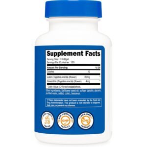 Suplemento en cápsulas blandas con zeaxantina y luteína de alta potencia, diseñado para proteger la salud ocular, mejorar la visión, apoyar la salud macular y defender contra el estrés oxidativo. Ideal para quienes buscan cuidado visual y estilo de vida saludable.