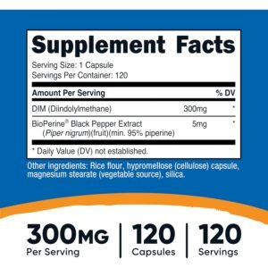 Suplemento en cápsulas vegetales con 300 mg de DIM y BioPerine para absorción óptima, pensado para apoyar el equilibrio hormonal, detoxificación natural y salud integral. Ideal para quienes buscan estilo de vida activo, anti-age y rendimiento. Fórmula libre de gluten, soja y lácteos.