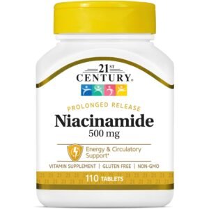 Niacinamida 500 mg de 21st Century en fórmula de liberación prolongada. Apoya la energía celular, contribuye a la función circulatoria y favorece el metabolismo. Libre de gluten y no GMO. Producto 100 por ciento original importado de Estados Unidos.