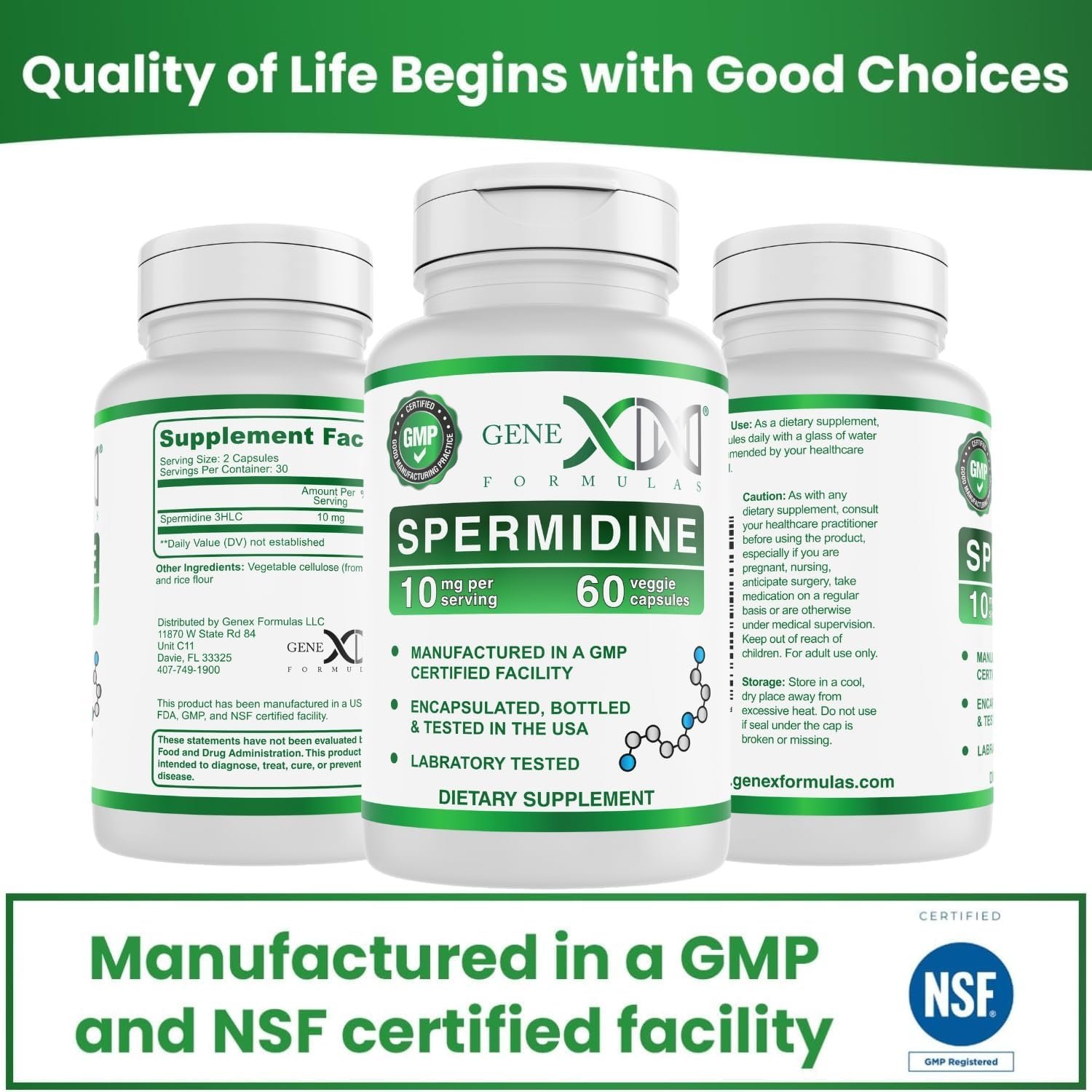 Genex Formulas Suplemento de espermidina, 10 mg de espermidina de extracto de germen de trigo, suplemento de autofagia, sin OMG, sin gluten, suplementos de espermidina para un envejecimiento saludable y renovación celula