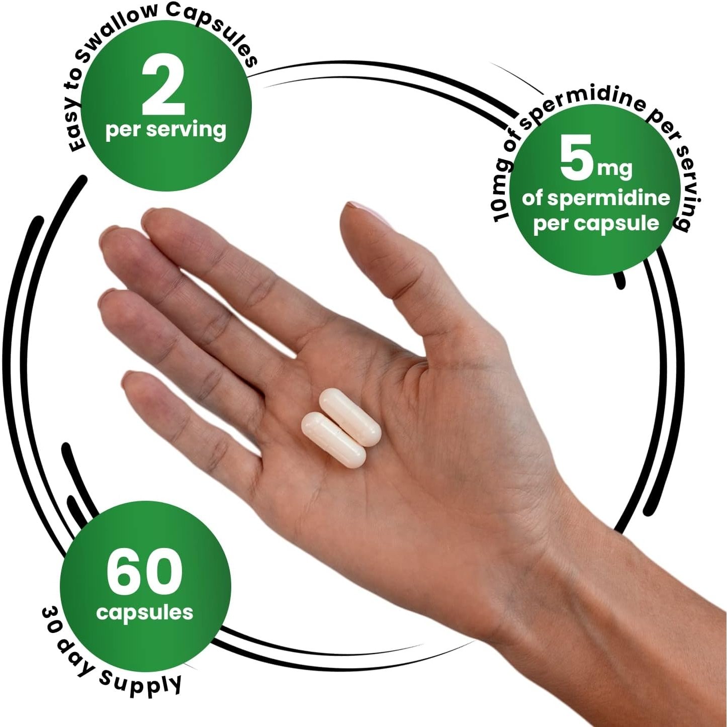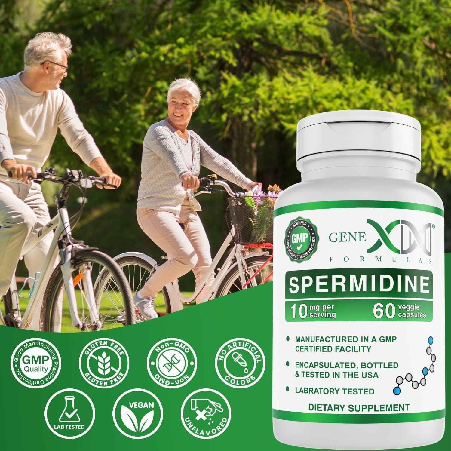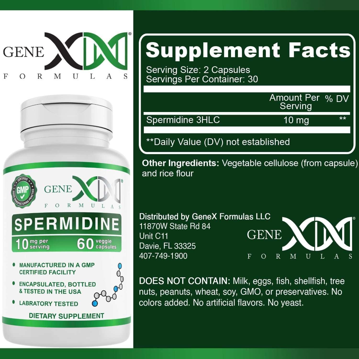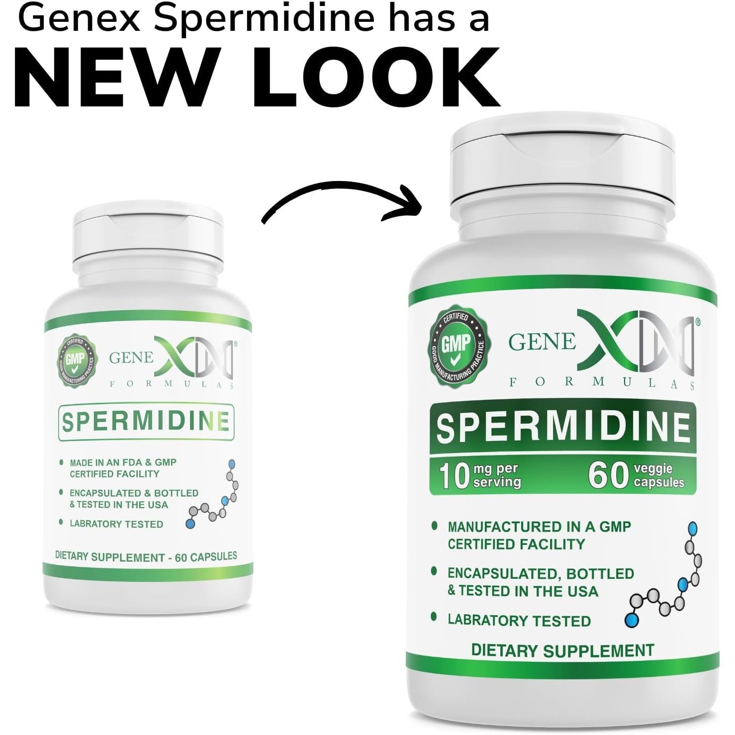 Genex Formulas Suplemento de espermidina, 10 mg de espermidina de extracto de germen de trigo, suplemento de autofagia, sin OMG, sin gluten, suplementos de espermidina para un envejecimiento saludable y renovación celular, 60 cápsulas veganas