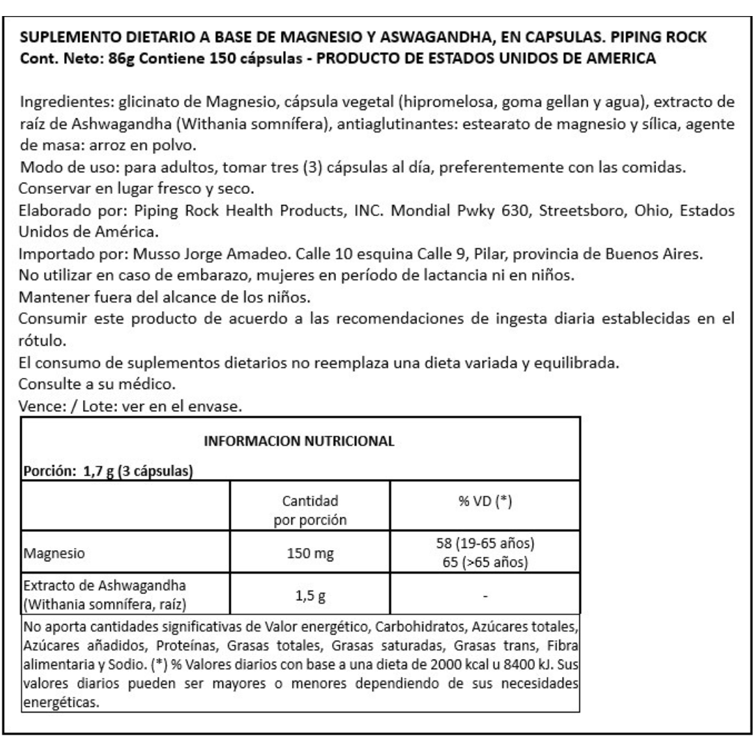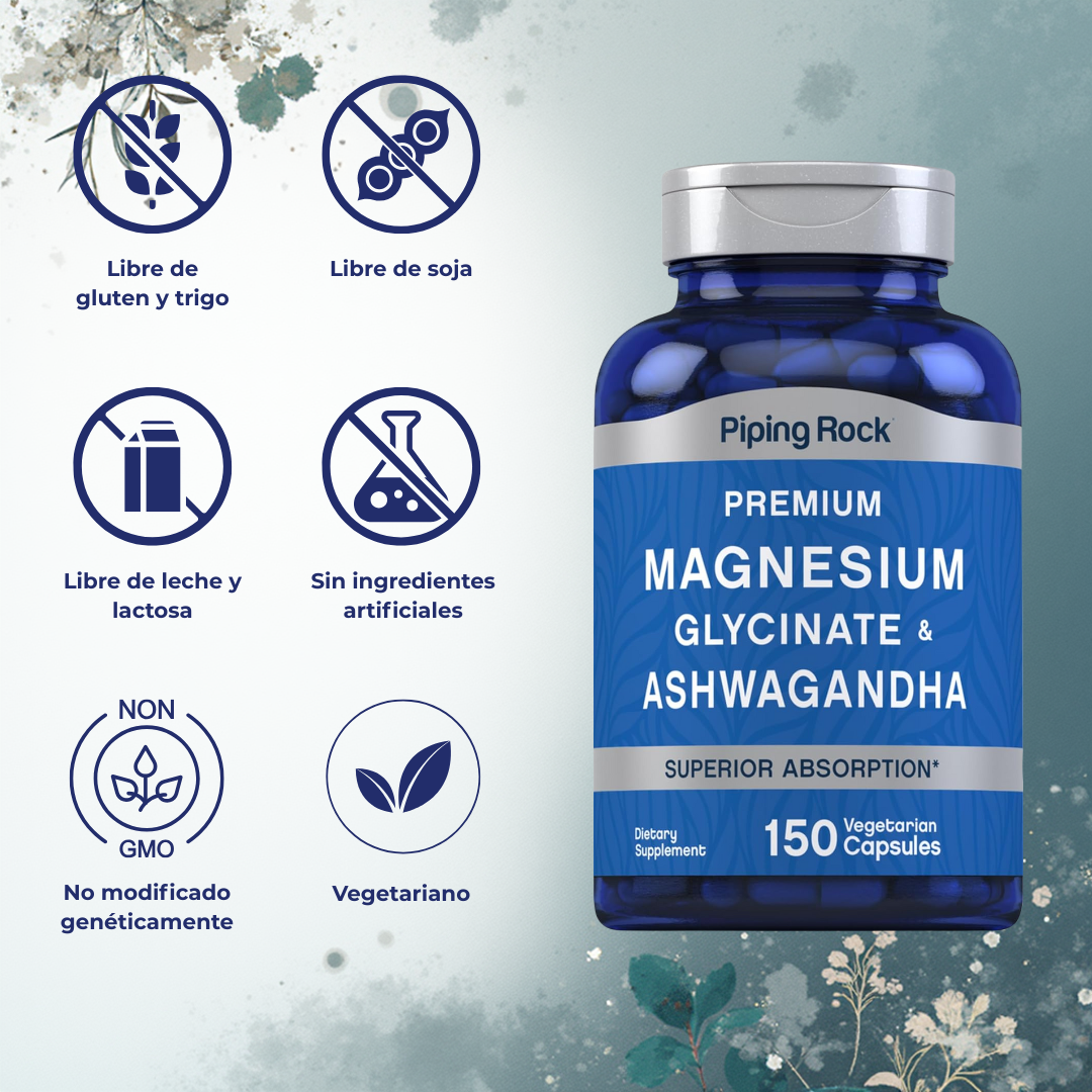 Magnesium Glycinate & Ashwagandha – PIPING ROCK – IMPORTADO DE ESTADOS UNIDOS