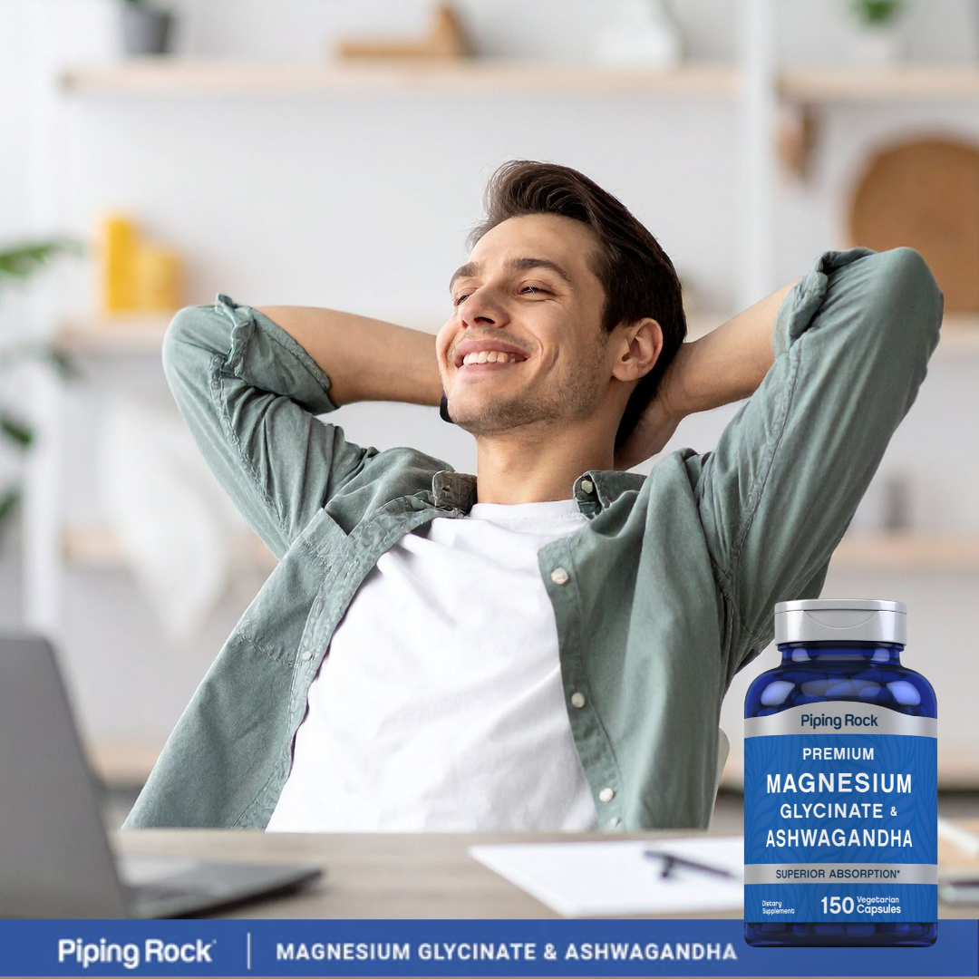 Un frasco de Magnesium Glycinate & Ashwagandha Piping Rock x 150 cápsulas vegetarianas