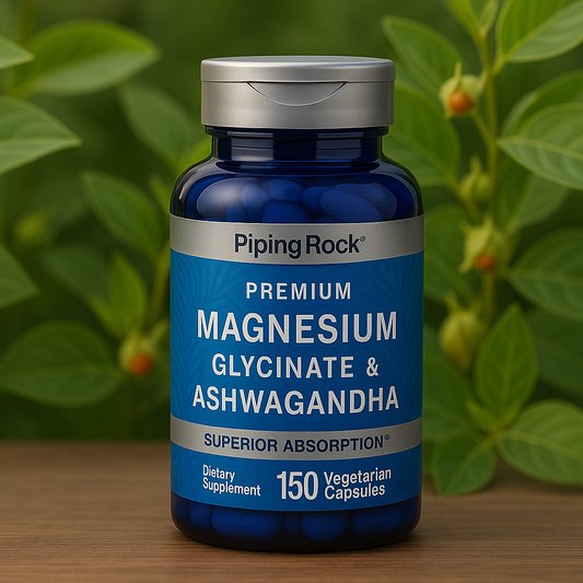Piping Rock Magnesium Glycinate & Ashwagandha combina dos ingredientes altamente valorados por su apoyo al bienestar físico, mental y emocional.