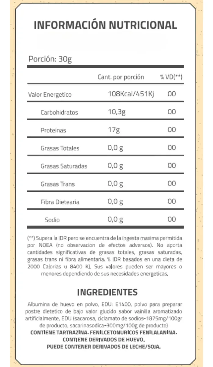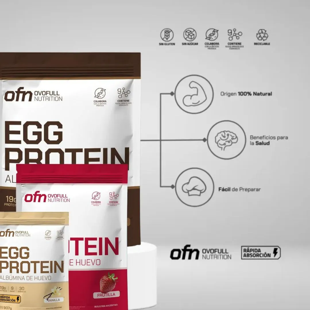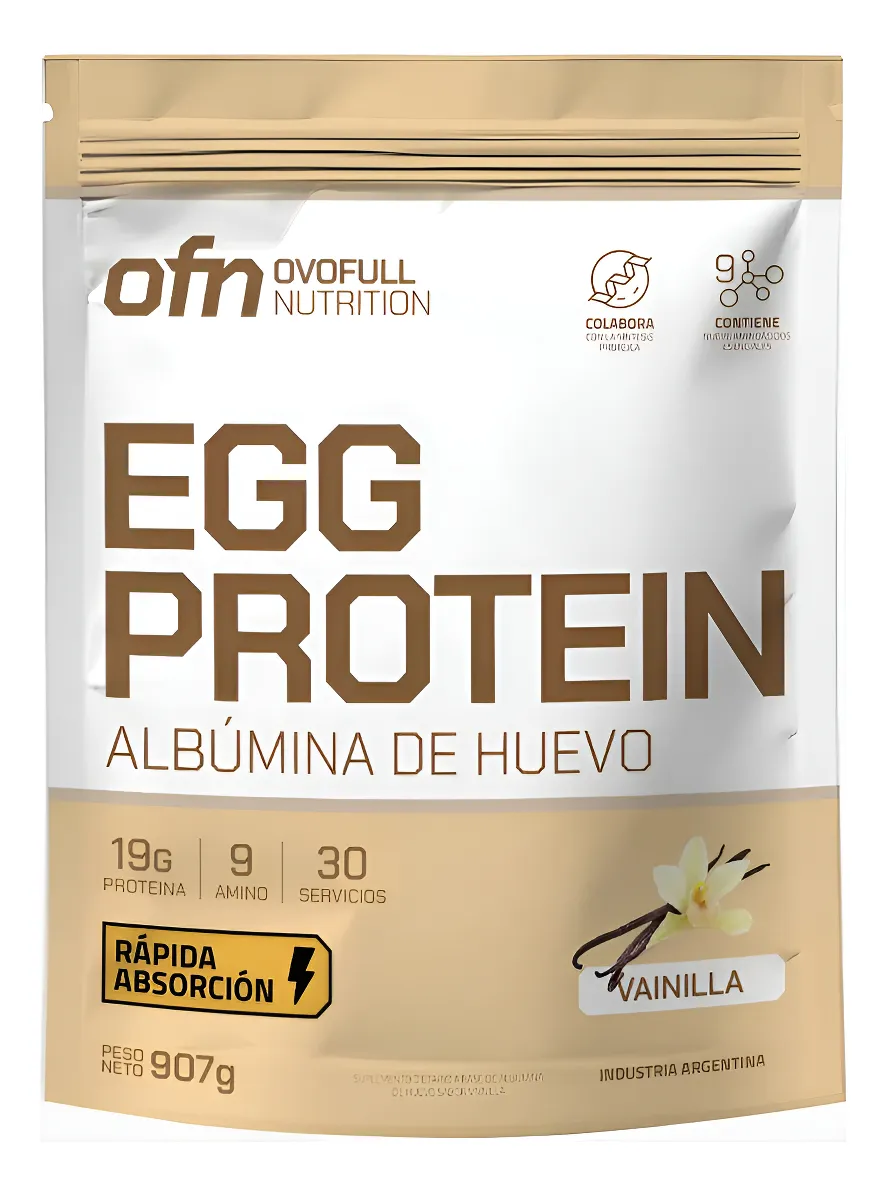 Egg Protein de Vainilla de la línea Ovofull es una albúmina de huevo en polvo de calidad premium, elaborada a partir de claras de huevo frescas, para proveer proteína pura y efectiva en tu nutrición diaria. Cada porción aporta 19 g de proteína de alto valor biológico con todos los aminoácidos esenciales, ideal para promover la síntesis muscular y potenciar la recuperación después del entrenamiento.